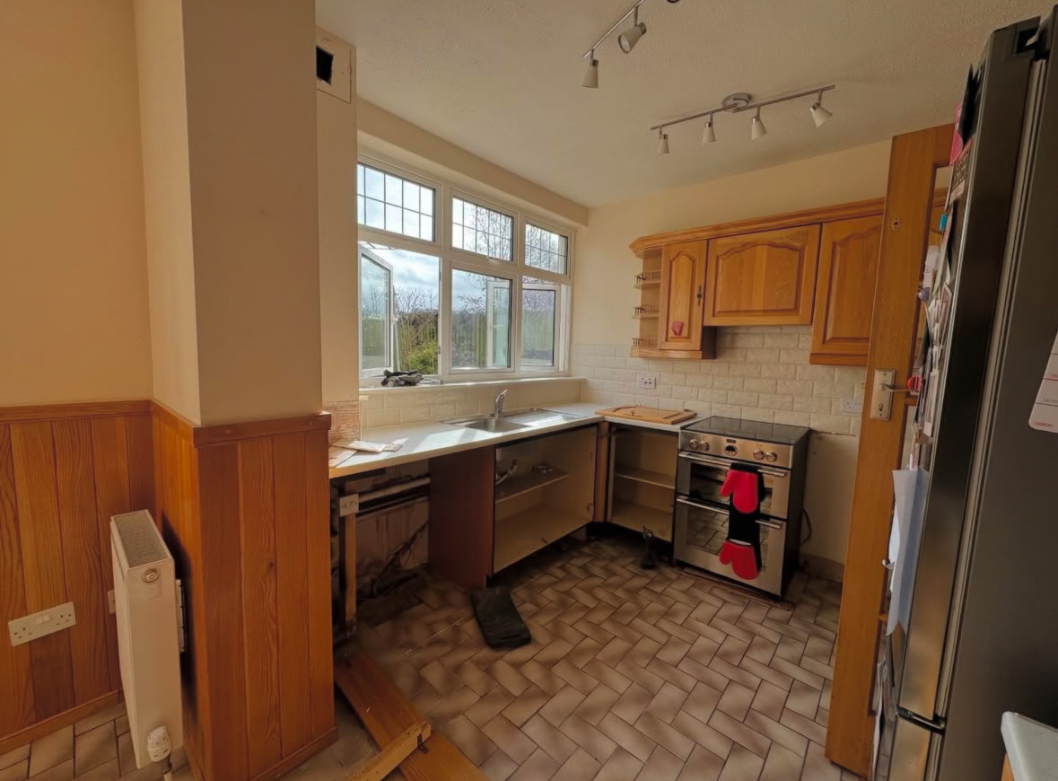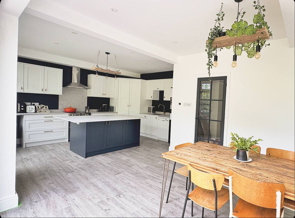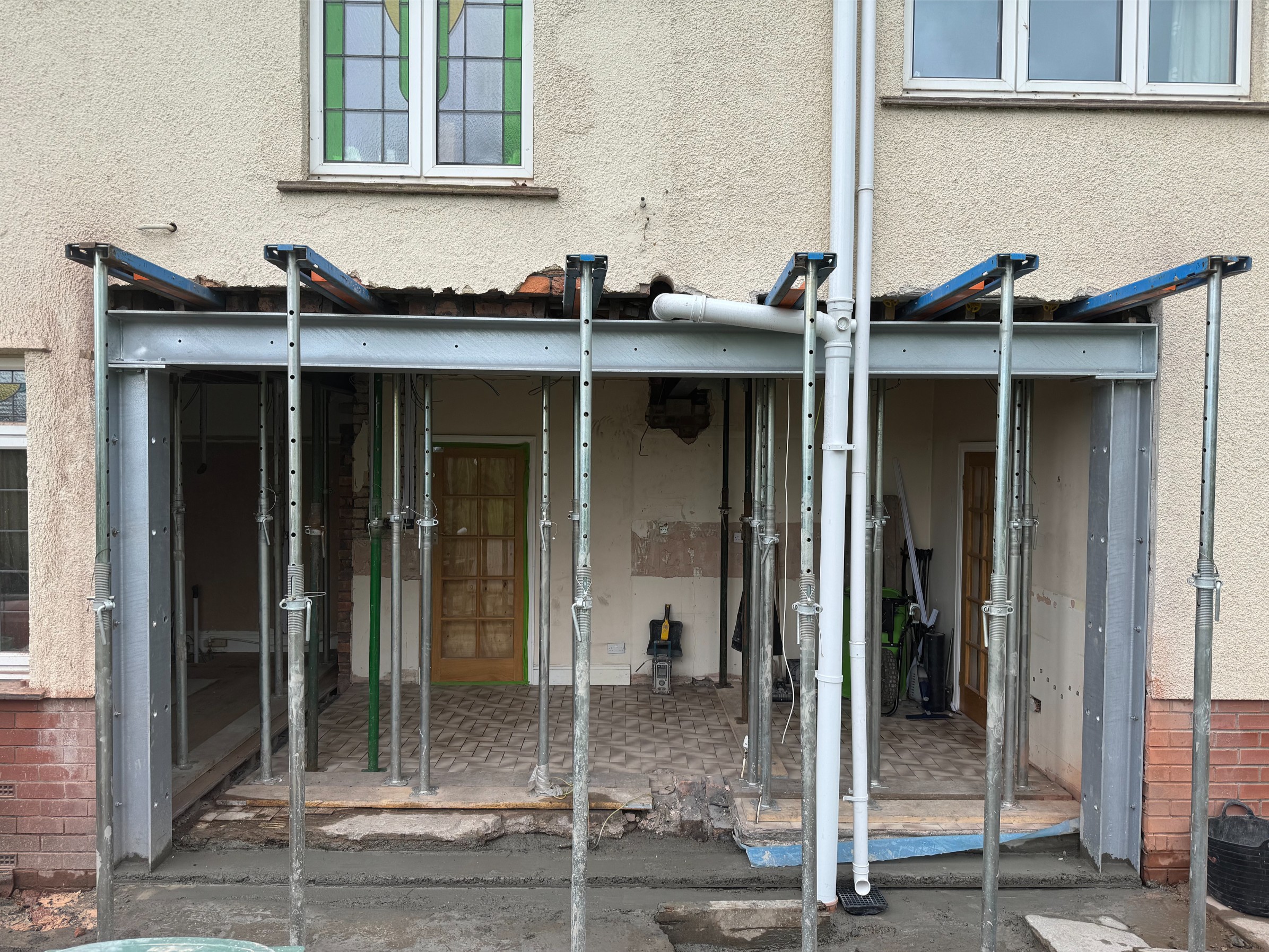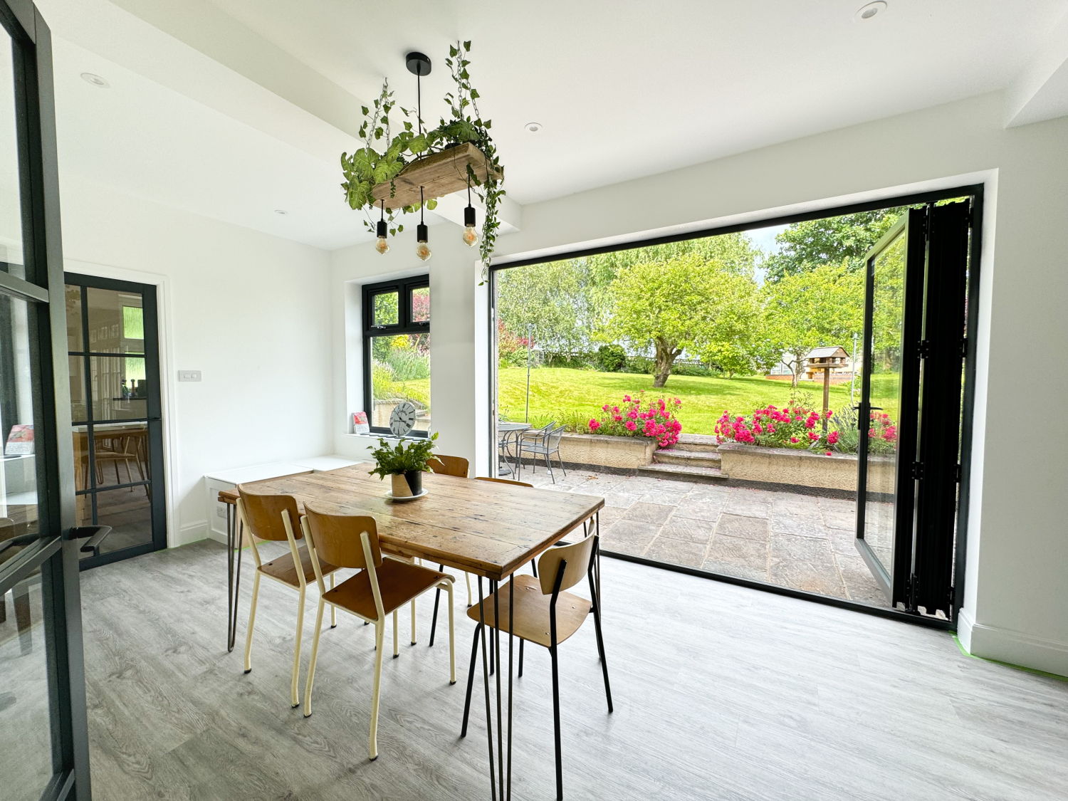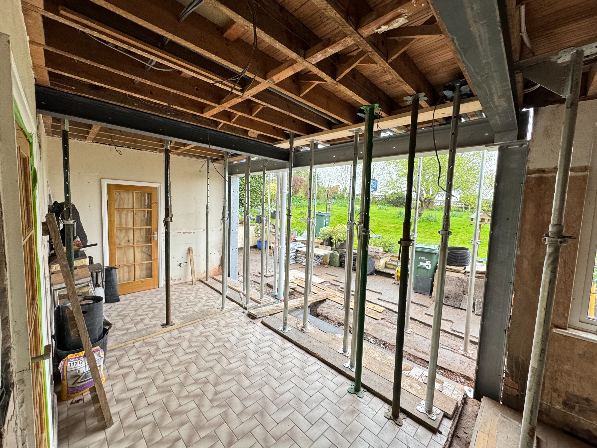 The Long Ashton project focused on transforming a traditional kitchen and dining room into a spacious, open-plan family area, bringing in more light and usability while reinforcing the home’s structural longevity.